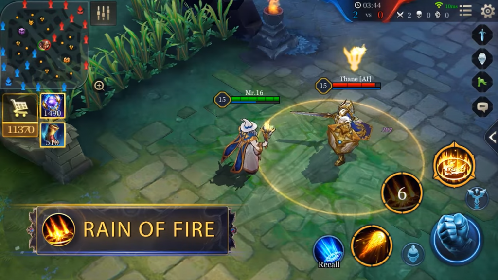 Ignis summons a rain of fire at the target area for three seconds dealing magic damage every second to enemies in the area and reducing their movement speed by 30% for 1.5 seconds. Marked targets are stunned for 1.5 seconds. As the primary controllability of Ignis, Rain of Fire can deal multiple AoE damage. Therefore, can be used to poke and wear down the enemies before battles. Try to cast rain of fire on marked targets in order to trigger the stunning effect thereby maximizing the damage.