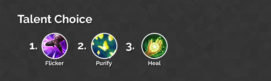 Purify would be the 2nd best option because you can purge incoming crowd control effects. It could be the defining moment between a live or die situation for you. See that Grakk hook coming? Purify. See that Slimz spearheading for you and you are unable to dodge? Purify.