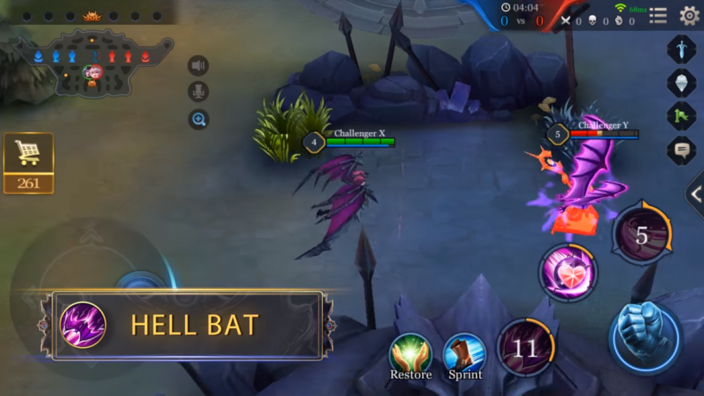 Veera opens up a dimensional portal out of which a bat shall fly to deal magical damage to enemies in its path. This is a directional area-of-effect ability. Veera will normally use this skill on those in the middle of where she wants its path to go. Veera can also use hell bat to kill enemies at a distance while they are fleeing while low on health.